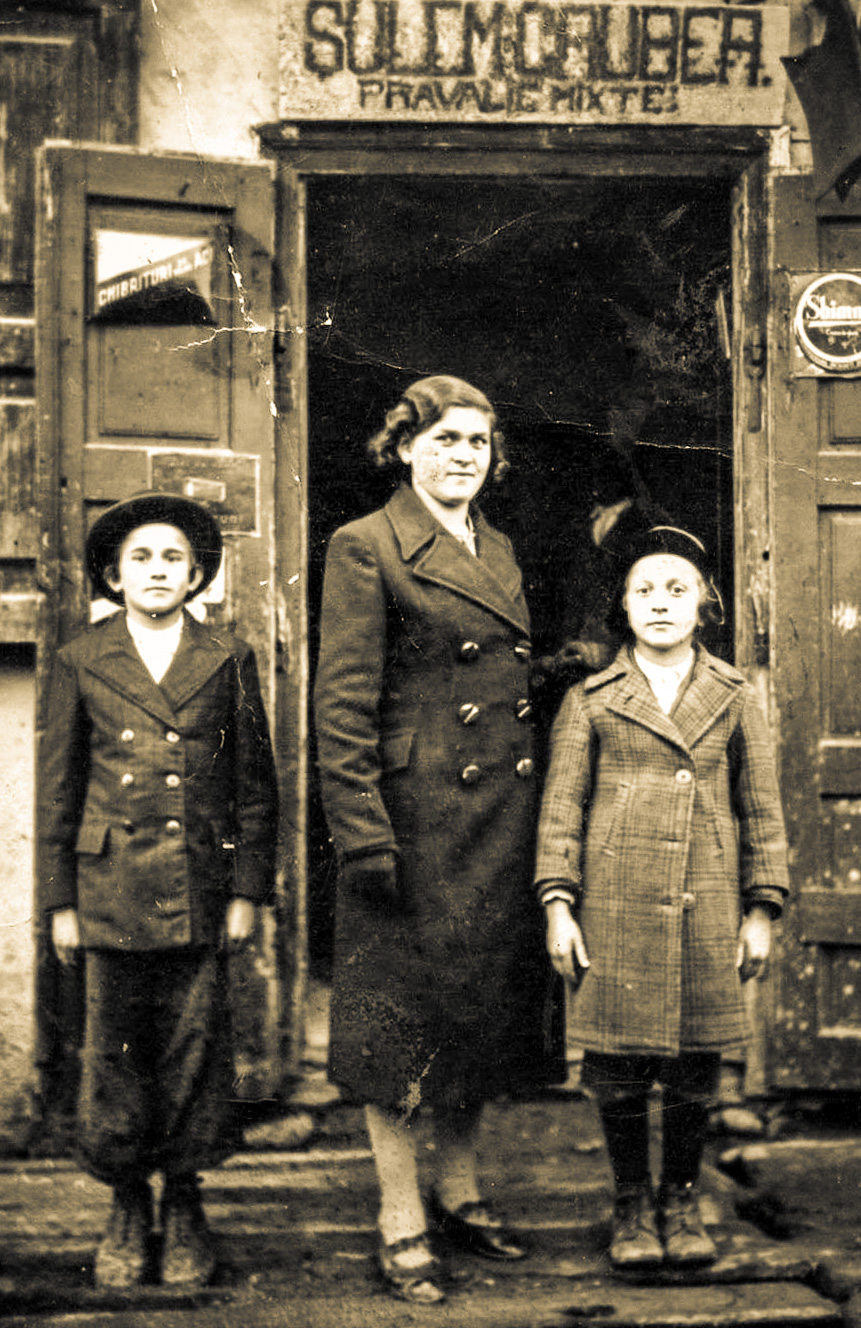 1938, Haim, Yona, Yehuda 10 in front of father's store in Moisei Transylvania |