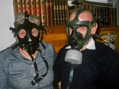 With gas masks |
